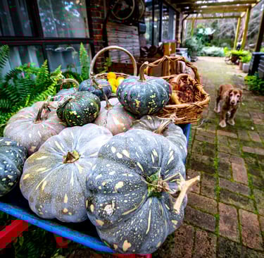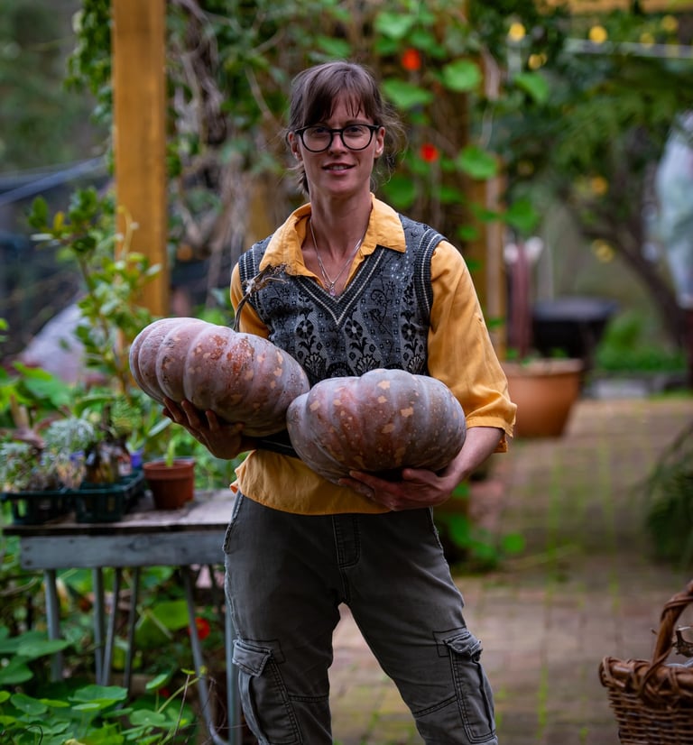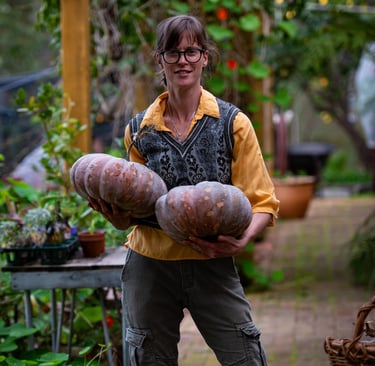 I love pumpkins. Their smooth round bottoms. How they store for a whole year until the next crop is ready. How my children actually enjoy the soup I make from them. There’s nothing quite like the satisfaction of your children happily eating something you’ve cooked that’s good for them, and that you grew yourself.