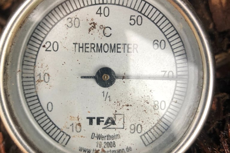 (I actually had to cool the pile down at this point - 70 degrees is a bit too hot.
